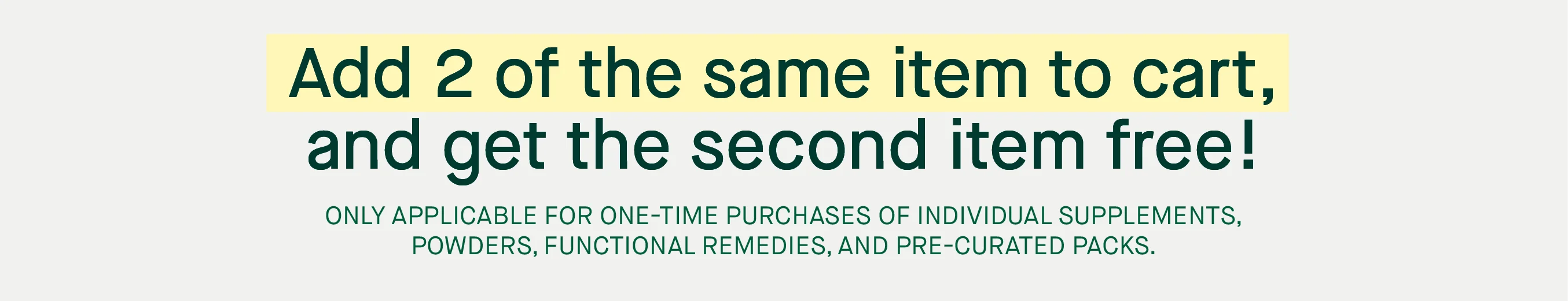 From now till 14 Nov, add 2 of the same items to cart and get the second item free! *Promotion not valid for 30-day sachets of Individual supplements. Promotion is not applicable for subscription purchases. Additional T&Cs apply.